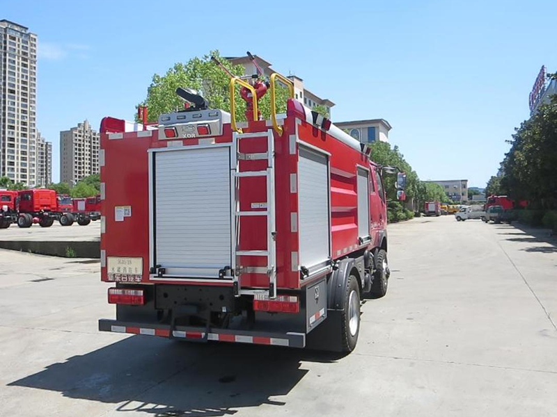 ※ 整車后頂部安裝 50W LED 消防探照燈 1 個(gè),360 度遙控轉(zhuǎn)動(dòng)。 ※ 車輛尾部安裝可折疊式爬梯。